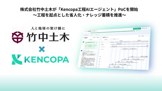 建設現場の省人化・自動化に挑む株式会社KENCOPA(本社:東京都渋谷区、代表取締役CEO:安村 荘佑、以下 KENCOPA)は、株式会社竹中土木(本社:東京都江東区、取締役社長:竹中 祥悟、以下 竹中土木)において、当社が開発する建設業務特化型AIエージェント「Kencopa工程AIエージェント」PoC(概念検証)が開始されたことをお知らせします。