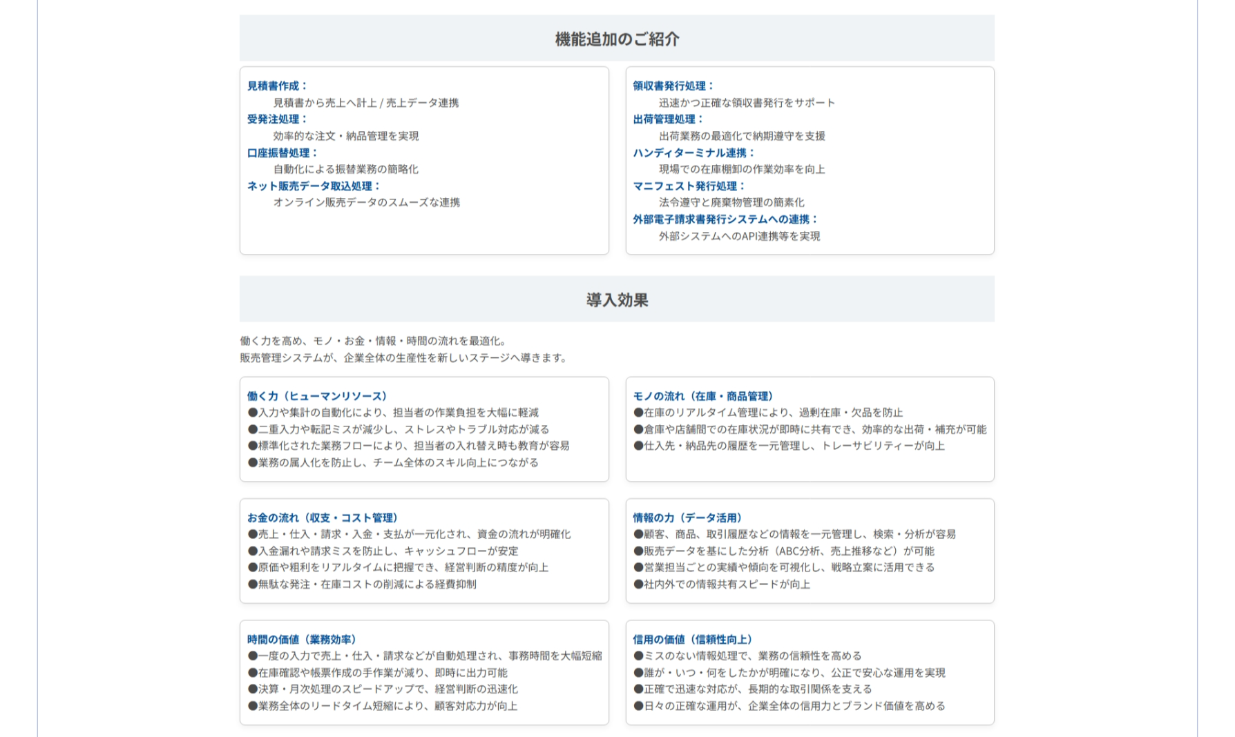 - 課題別支援メニュー: 販売管理、工程管理、業務効率化など、現場の悩みに直結するメニューの紹介。