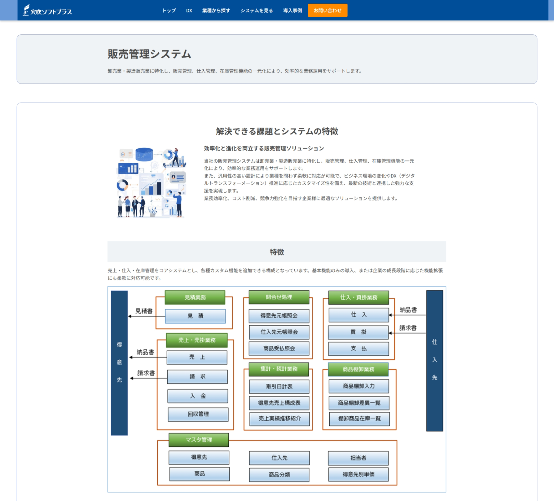 穴吹ソフトプラスは、こうした経営者様の悩みに寄り添い、IT導入によって「会社がどう変わるのか」を明確に伝えるため、サイト内のシステム開発コンテンツを全面リニューアルしました。