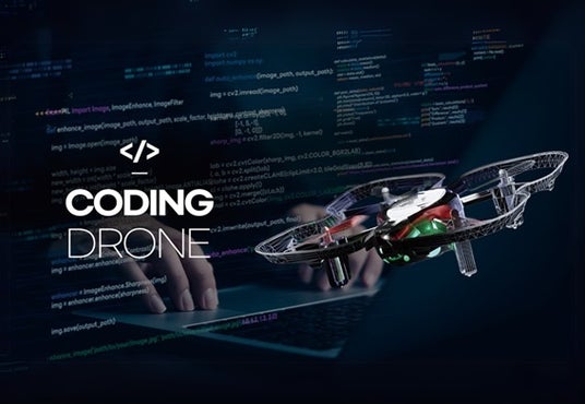 ドローンを活用した3次元のプログラミング体験を通じて、生徒が論理的思考力やICTリテラシーを自然に身につけ、「できた!」という喜びとともに、未来を切り拓く力を育むことを目指しています。提供するプログラミングドローンは、生徒たちが楽しみながら「考える力」や「発想力」を自然と身につけられる教材です。初心者向けのブロック型言語(Scratch)から、上級者向けのテキスト型言語(Python)まで対応したカリキュラムを提供しています。