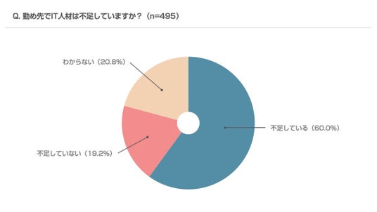3)全体の6割(60.0%)が「IT人材が不足している」と回答