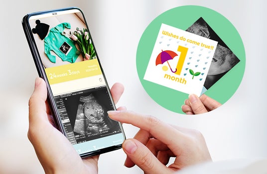 トツキトオカの「エコー写真無料印刷」※1は高品質!毎回9枚までアプリに保存されたエコー写真を正方形カード(一辺89mm)に無料で印刷してご自宅にお届けします。