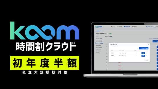 教育者の可能性を最大化するEdTechカンパニー、コトバンク株式会社(本社:東京都渋谷区、代表取締役:小泉純)は、校務DXプラットフォーム「KOOM(コーム)時間割クラウド(以下、KOOM)」において、一定以上のクラス数・コマ数を持つ私立中学校・高等学校を対象とした「2026年度初年度利用料半額キャンペーン」を実施することをお知らせいたします。