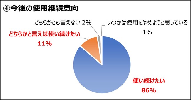 温水洗浄便座の今後の使用継続意向については、「今後も使い続けたい」と考える人は86%、