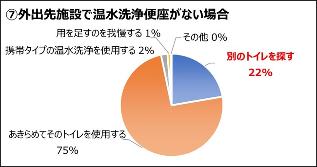 7.温水洗浄便座を求めて「別のトイレを探す」という愛用者も22%存在する。