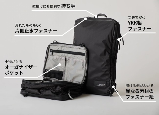 「HOLICC」は、旅と仕事の行き来をスムーズにするアイテムを開発、販売するブランドです。