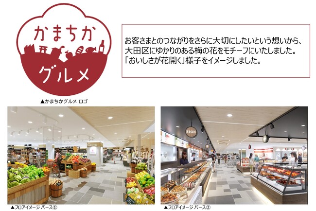 フロア新名称「かまちかグルメ」 グランデュオ蒲田西館地下1階食品フロアは、2008年の開業より、「駅地下市場」という名称でお客さまの毎日に寄り添ってまいりました。15年間お客さまと築いたつながりを大切にしていきたいという想いと、これからも蒲田のお客さまと、より深く強くつながっていきたいという想いから、フロア名称を「駅の地下」から「かまたの地下」へ改め、「かまちかグルメ」といたしました。 お客さまに寄り添い、日常を彩る提案をしてまいります。