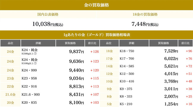 金の国内買取価格が1万円となり、過去最高値を更新した。