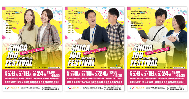 滋賀の企業や人の魅力の再発見する株式会社いろあわせ(本社:滋賀県彦根市、代表取締役:北川雄士)は、2022年3月8日(火)・18日(金)・24日(木)に開催される「ノースーツ・ノー作業着」の合同企業説明会「しがジョブフェスティバル」のポスターおよびデジタルサイネージを、滋賀および京都のJR駅構内で出稿開始しました。