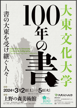 2023年に創立100周年を迎えた大東文化大学では、開学以来、漢学と書に重きを置いてきた。日本で唯一の書道専門機関である書道研究所を擁し、書道担当教員と連携しながら、書文化の普及と発展のため、学内外に向けてさまざまな企画を実施している。