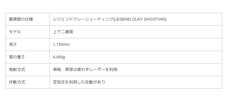 「レジェンドクレーシューティング」で採用する散弾銃は、クレー射撃競技で最も一般的な銃「上下二連銃」を採用、ピジョンめがけて的確にショットできるならば、心地よい快感、程よい反動を味わえる事でしょう。