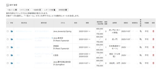 取引先・案件・要員の管理機能