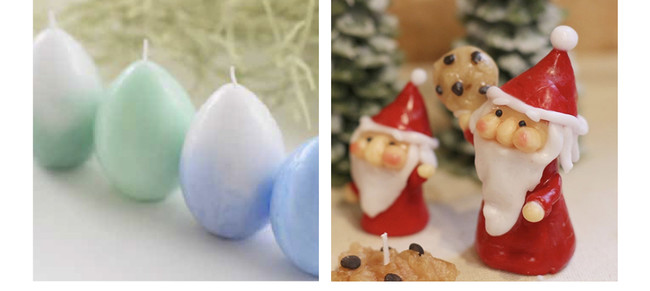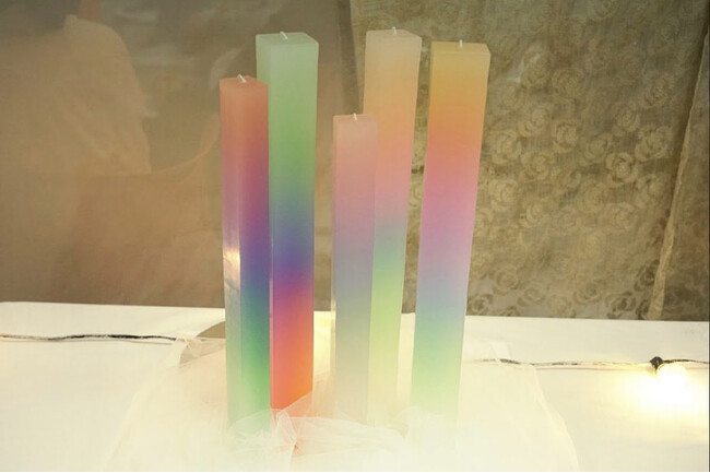 ホイッピングしたワックスを手で捏ねて造形し、火を灯した際の流ロウにも配慮した作品