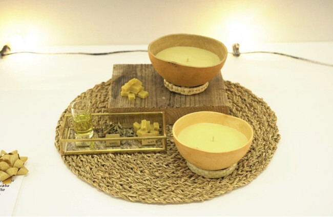 ボタニカル(植物)を使用し、火を灯した際にその印影が効果的に映る作品