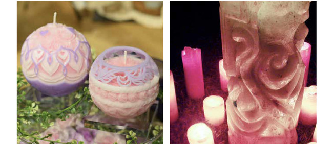 キャンドル表面にカービング(彫り)を施すことで、光の透過性・拡散性を高めている作品