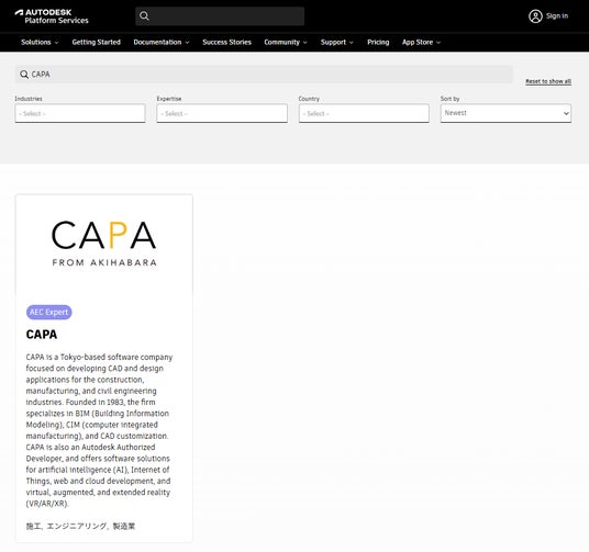 画像引用: Autodesk, Inc.「Autodesk Platform Services Certified Partners」検索ページ