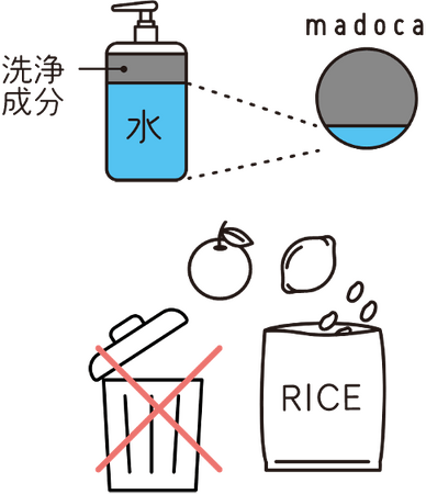 固形シャンプーは液体シャンプーと比較すると、水の使用をできる限り抑えた処方となるため、大きな節水となり、大切な水資源の保全につながります。また、商品を購入いただくと、簡単にフードバンク寄付に繋がるなど、madocaは環境問題解決に協力できる商品になっています。