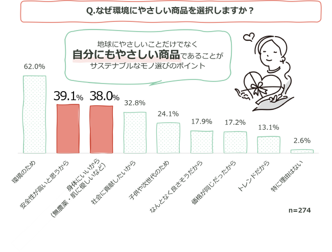 “安全性の高さ”や“無農薬”、“肌にやさしい”など環境だけでなく「自分にもやさしい」ことが