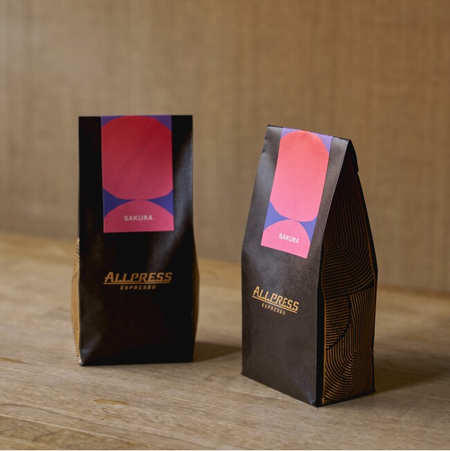 SAKURAの販売に合わせて数量限定のドリップバッグも登場。お湯を注ぐだけで簡単にSAKURAを楽しむことができるこのドリップバッグは、ご自宅やオフィス、アウトドアはもちろん、出会いと別れの季節でもあるこの時期、お世話になった方へ贈るプレゼントにもぴったりです。オールプレス・エスプレッソ 東京ロースタリー&カフェ、オールプレス・エスプレッソ 虎ノ門カフェ、オンラインストアでは、ギフト用のパッケージもご用意しています。