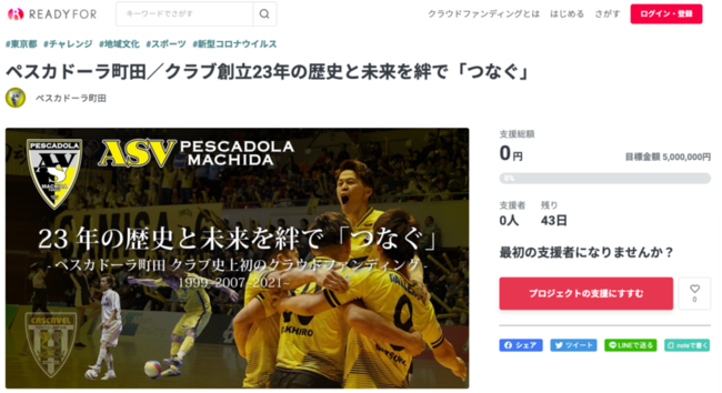 ペスカドーラ町田(所在地:東京都町田市)は、クラウドファンディングサービス「READYFOR」にて、2022-2023シーズンのクラブ運営費を集めるために「ペスカドーラ町田/クラブ創立23年の歴史と未来を絆で「つなぐ」」を公開しました。500万円を目標に、本日2021年12月18日(土)9時から2022年1月31日(月)23時まで支援を募ります。
