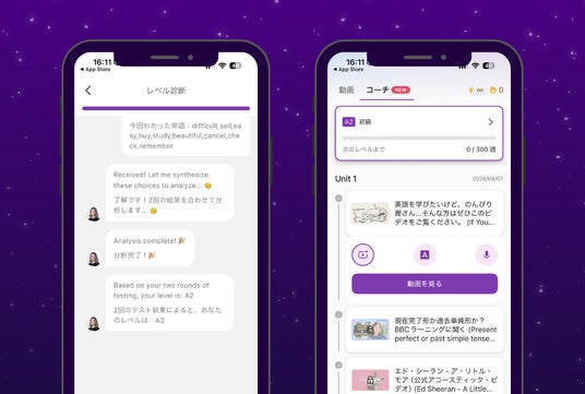能「AIコーチ」および「AIチャット」をリリースいたしました。本アップグレードにより、英語学習の