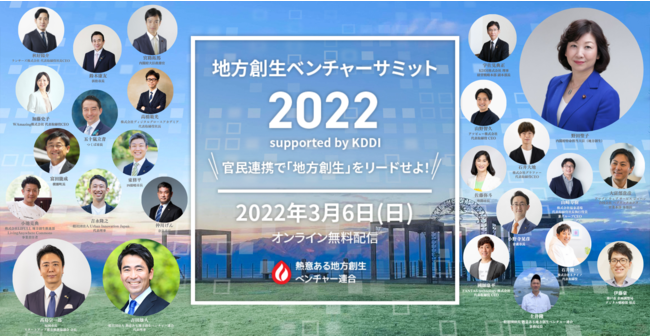 「一般社団法人 熱意ある地方創生ベンチャー連合(代表理事=吉田雄人)」は、「スタートアップ都市推進協議会(会長=高島 宗一郎 福岡市長)」と共同で、『地方創生ベンチャーサミット2022 supported by KDDI~官民連携で「地方創生」をリードせよ!~』を本年3月6日(日)に開催いたします。