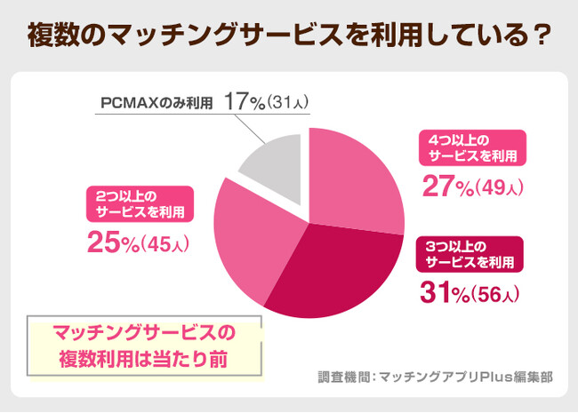 実際にPCMAX利用者の8割以上は、PCMAX以外のサービスと併用しているようです。