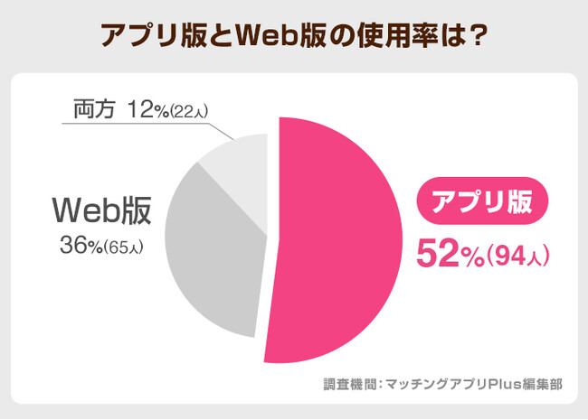 PCMAXは、Web版よりもアプリ版の利用者の方が倍近く多い結果でした。