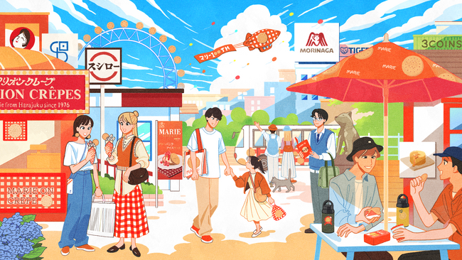 そんな記念のイラストを描かせていただけて嬉しかったのと、たくさんの企業様とのコラボ、打ち合わせの段階で既にワクワクでした!描いていてとても楽しかったので、そんなワクワクが伝わりましたら嬉しい限りです。実際の街中でのコラボもとても楽しみにしております。