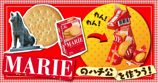 マリーと同じく今年で100歳を迎えたあの“ハチ公”とコラボ!100歳同士のコラボを記念して、マリーの空き箱からハチ公像を作ることができるパッケージクラフトの説明図をキャンペーンサイト(https://www.morinaga.co.jp/biscuit/100thcollabo/)にて公開します。