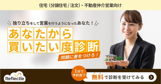 「Reflectle」の運用会社でテクノロジーを活用して人材育成と組織開発を行うCo-Growth株式会社が「住宅不動産営業向け」に営業力強化のための新サービス「あなたから買いたい度」診断の提供を開始いたしました。