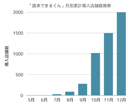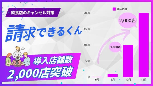2024年5月に提供を開始した「請求できるくん」は、順調に導入店舗数を伸ばし、10月に1,000店舗を達成しました。その後も導入事業者の皆様から多くの高い評価をいただき、12月における導入数は2,000店舗を突破し、急成長を遂げています。