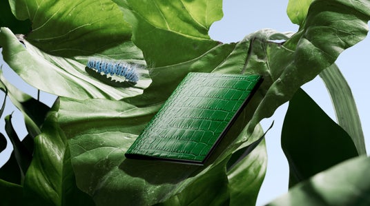 スマイソンの印象的なマーラ・レザーをクロコダイル型押しした春夏の新色クローバーは、自然の豊かさにインスパイアされています。