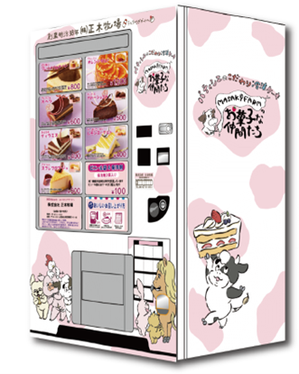 株式会社正木牧場(本社:大阪市)が新ブランドで展開する冷凍ケーキの自動販売機です。株式会社正木牧場は明治38年に創業以来、明治・大正は牧場経営、昭和には乳製品販売、平成に至ってはスイーツ製造へと時代の変化に伴い常に形態を進化させてきました。ミルクを知り尽くした会社ならではのスイーツ創りには定評があり、今では、全国の一流ホテルにも愛されるスイーツメーカーとなりました。その味をご家庭でも楽しんでいただくために、「MASAKI FARMのお菓子な仲間たち」ブランドで、本当に美味しいスイーツをお届けします。