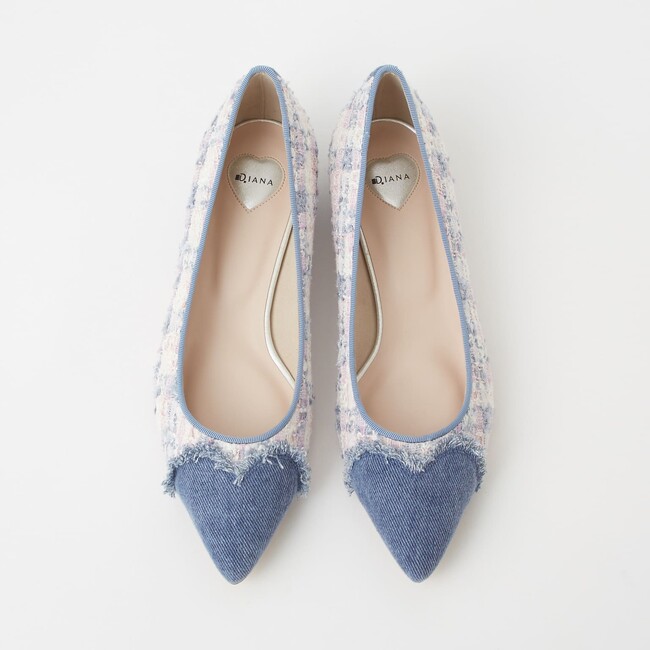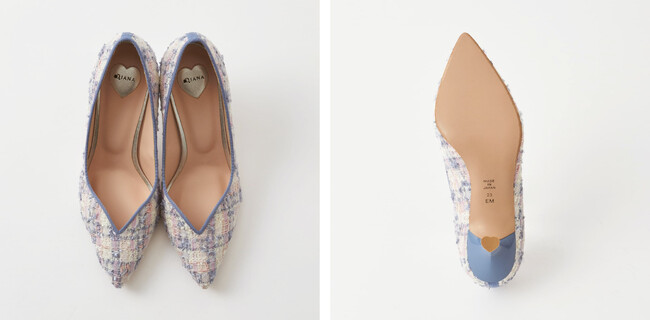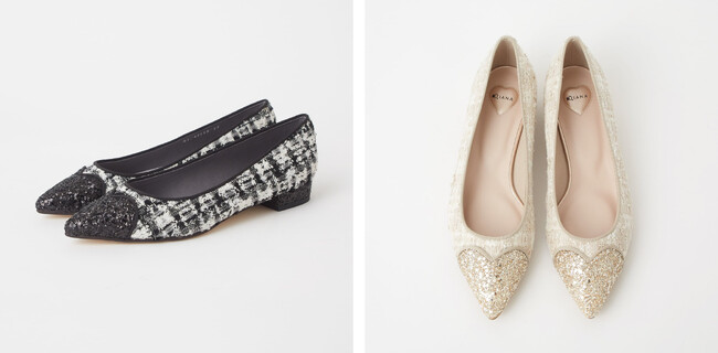 今注目のトレンド、ハートモチーフを表現したシューズが登場。中敷きや、ヒールなど細部までハートモチーフを施し、履くだけでフェミニンなムードが高まる装いに。カラーがミックスされているツイードを使用しより華やかな仕上がりに。冬のモノトーンのコーディネートのポイントになるアイテムです。