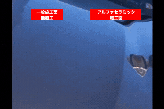 画像のボンネットの半分はアルファセラミックを施工した面、もう半分は無施工の面です。