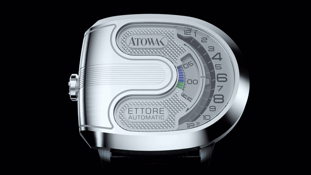 ATOWAK ETTOREは、長い歴史を持つWandering Hour方式(さまよう時間)を採用。