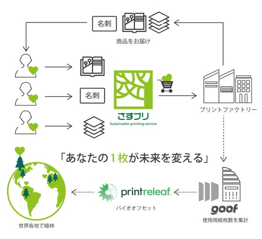 「さすプリ」は印刷を通じて、企業の規模に関わらず誰もが簡単にサステナビリティに参加できる機会を提供し、サステナブルなコミュニティを広げることを目指して誕生しました。