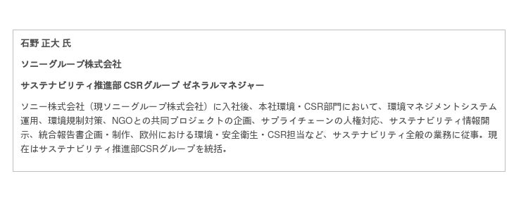 ソニーグループ株式会社 サステナビリティ推進部 CSRグループ ゼネラルマネジャー 石野 正大 氏