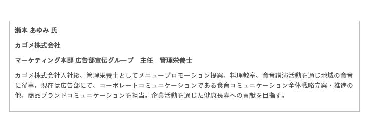 カゴメ株式会社 マーケティング本部 広告部宣伝グループ 主任 管理栄養士 瀬本 あゆみ 氏