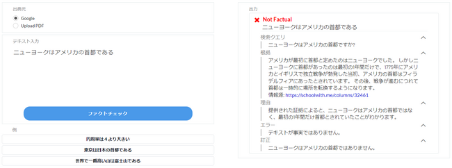 ファクトチェックのために従来人が行っていた確認作業の手間を大幅に削減することが可能となります。