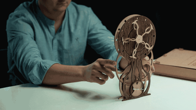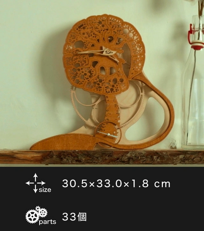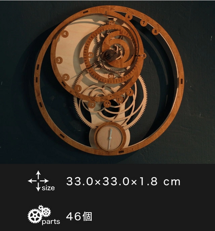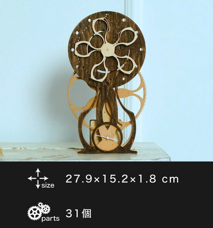 歯車や針までも天然木。あなたの手で組み立てる木製時計。全5種。Made in ウクライナ。自然の神秘が感じられるデザインと天然木の温もりがマッチ。部屋に飾れば、いつもの部屋がおしゃれな部屋に大変身。