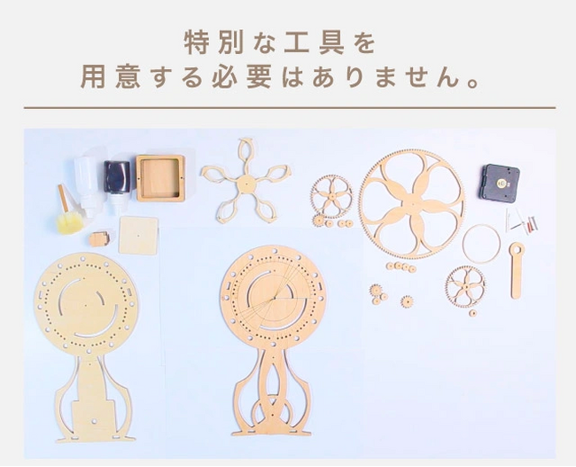この時計を通じて、組み立てることで幸せな時間を作り上げると同時に、あなたと共に幸せな時間を刻みたいという思いが込められています。