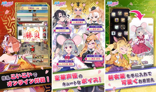 『えとはなっ!~干支っ娘・花札バトル~』とは全国のプレイヤーとリアルタイムにオンライン対戦できる花札ゲームです。花札のルールは「こいこい」を採用しました。リーグ戦方式で全国のプレイヤーとランクを競う『干支っ娘バトル』、友人と対戦できる『フレンドバトル』、コンピューターと好きなだけ対戦ができる『練習戦』があり、花札の初心者から上級者まで幅広くお楽しみいただけます。