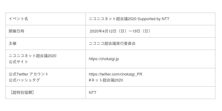 新型コロナウィルスによる非常事態宣言の発表を受け、ニコニコネット超会議2020では、全関係者の安全を第一に考えた企画実施を徹底しております。出演者・スタッフ、そのほか関係者の検温の徹底、人数の限定、また距離を保ち、最大限の対策を行った上での放送を実施します。