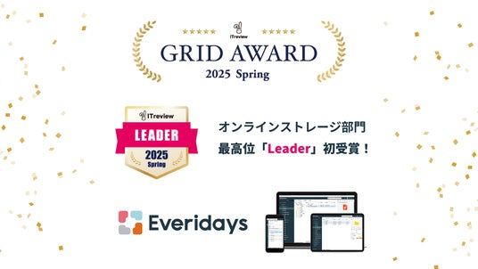 オンラインストレージサービス「Everidays」を運営する株式会社yett(本社:福岡県福岡市、代表取締役CEO:高橋航太)は、アイティクラウド株式会社(本社:東京都港区、代表取締役社長 :黒野 源太)が運営するビジネス向けIT製品・SaaSのレビュープラットフォーム「ITreview(アイティレビュー)」において、「ITreview Grid Award 2025 Spring」オンラインストレージ部門で最高位「Leader」を受賞したことをお知らせします。
