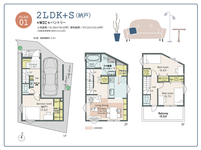 家族や趣味に応じた収納スペースを豊富に備え、スッキリとした空間を提供。シューズインクローゼットやファミリークローゼットなど、使い勝手にこだわった工夫が満載です。