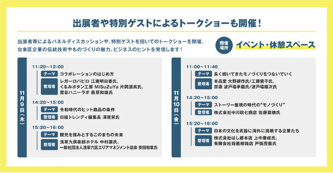 台東区内事業者によるパネルディスカッションのほか、中川政七商店、日経トレンディ編集部をゲストに迎えたトークショーを実施