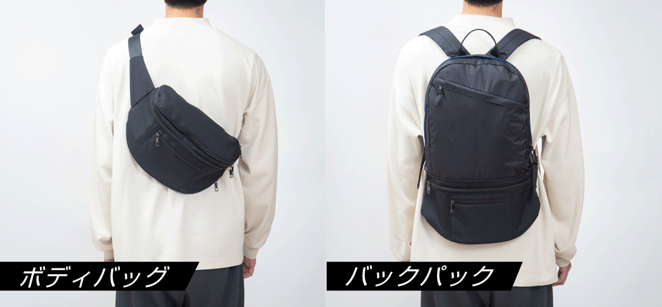□ ボディバッグからバックパックに瞬間変形