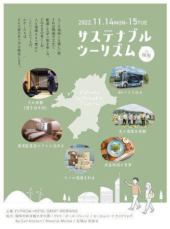 “#サステナブルツーリズム”プロジェクトは、SDGsのターゲットにも掲げられ、重要な課題となっている食・もの・文化・健康・エネルギーへの意識向上を、観光を通じて促進するべく、ホテルグレートモーニング博多と福岡市及び市内を拠点に環境配慮型のビジネスを展開する事業者が協働しモデルツアーを実施いたします。